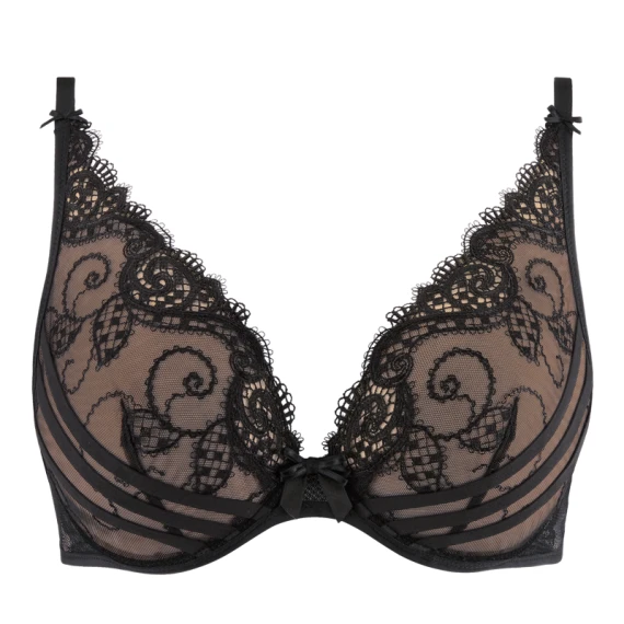 Der Bügel BH A La Folie von Aubade ist in der Farbe Khol erhältlich. Dieser wunderschöne BH ist komplett mit einer sinnlichen Stickerei auf einem transparenten Tüll bedeckt. Zwischen den Cups befindet sich eine süße kleine Schleife. Der untere Teil der Körbchen ist mit elastischen Streifen versehen, die geschnürt werden. Kombinieren Sie diesen schönen Bügel BH mit einem der Slips aus der Kollektion A La Folie.