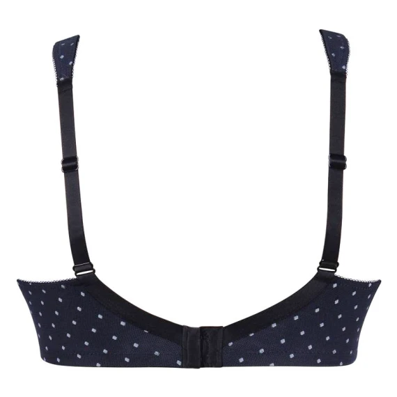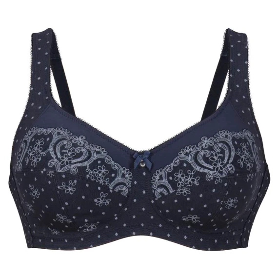 Der Belvedere Komfort BH ohne Bügel von Anita ist in der Farbe Deep Blue erhältlich. Dieser dunkelblaue BH ohne Bügel hat ein schönes Muster. Die Cups bieten den besten Komfort, den Sie von einem Anita-BH gewohnt sind. Das Tüllfutter sorgt für Stabilität und ist herrlich atmungsaktiv. Die breiten, gepolsterten Träger entlasten den Nacken- und Schulterbereich auf angenehme Weise. Die Stickerei am Halsausschnitt ist ein echter Hingucker – sehr elegant!