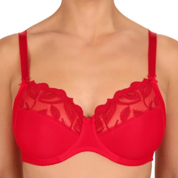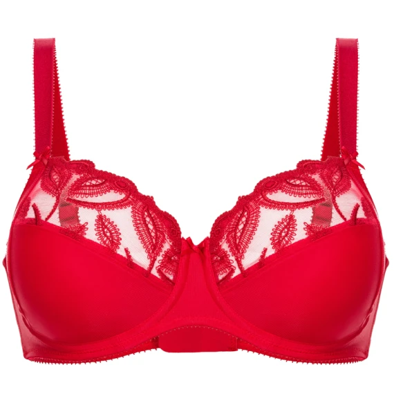 Der Bügel BH Choice von Felina ist in der Farbe Amarena erhältlich. Dieser rote BH hat einen halbtransparenten Stoff mit einer verspielten Stickerei auf der Oberseite der Cups. An den Trägern und zwischen den Cups befindet sich außerdem eine süße Schleife! Kombinieren Sie diesen BH mit den Slips aus der Choice-Serie!