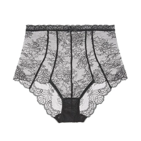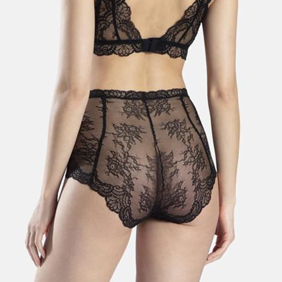 Der Danse des Sens-Slip von Aubade ist in der Farbe Noir gehalten. Dieser schöne Slip ist komplett mit edler schwarzer Spitze überzogen. Sowohl die Vorder- als auch die Rückseite des Slips sind teilweise durchsichtig. Kombinieren Sie diesen eleganten Taillenslip mit einem der BHs aus der Kollektion Danse des Sens.