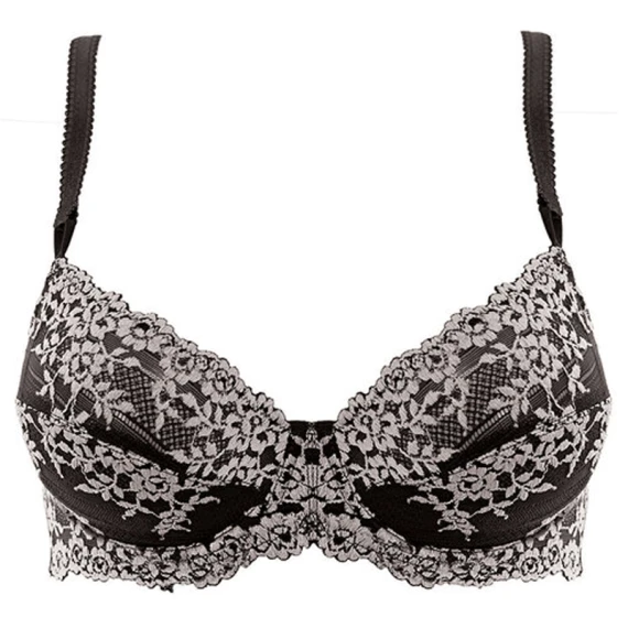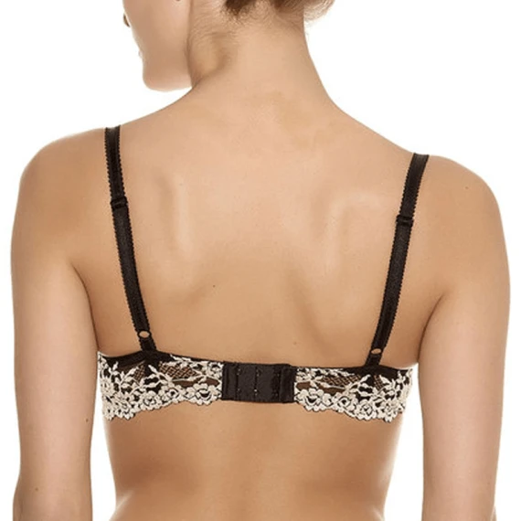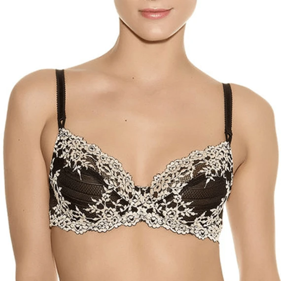 Der Embrace Bügel-BH von Wacoal in der Farbe Black. Dieser schwarze BH ist an der Ober- und Unterseite mit Blumenstickerei verziert. Dies rundet das Design des luxuriösen BHs ab!