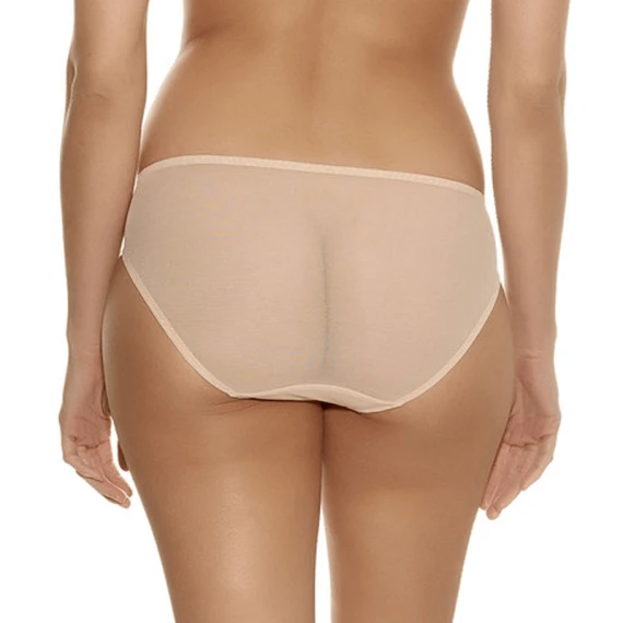 Der Embrace Lace Slip von Wacoal in der Farbe Nude. Der Slip ist hinten und vorne aus durchsichtigem Stoff. Der hautfarbene Slip ist teils mit elfenbeinfarbener Blumenstickerei verziert. Außerdem bietet der Slip hohen Tragekomfort dank des Stretchanteils im Stoff