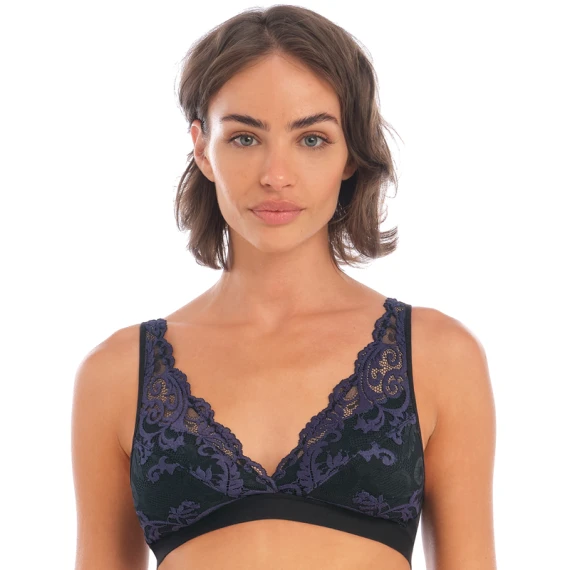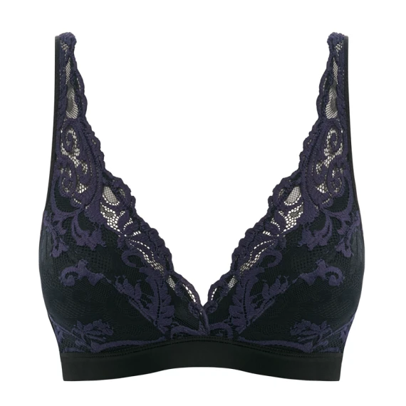 Der Raffine Bralette von Wacoal ist in der Farbe Black erhältlich. Dieser aufregende schwarze Bralette ist aus einem weichen Stoff gefertigt, der für ein angenehmes Tragegefühl sorgt. Die Körbchen des BHs sind wunderschön mit floraler Spitze in Blau/Lila verziert. Das vervollständigt diesen sinnlichen BH!
