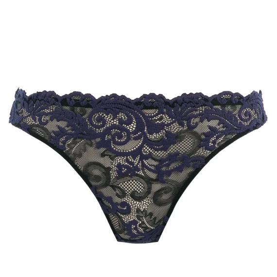 Der Instant Icon String von Wacoal ist in der Farbe Black Eclipse erhältlich. Dieser schwarze String ist mit wunderschöner floraler Spitze in Blau- und Lila-Tönen verziert. Die hohen Beinausschnitte lassen Ihre Beine optisch länger wirken. Kombinieren Sie diesen String mit einem der passenden Instant Icon-BHs!