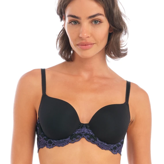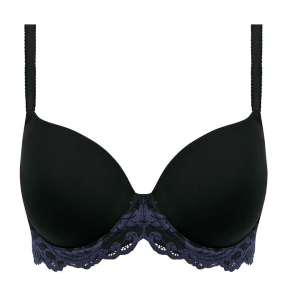 Der Instant Icon vorgeformter BH von Wacoal ist in der Farbe Black Eclipse erhältlich. Dieser schwarze BH hat nahtlose Körbchen und ist im unteren Bereich mit eleganter Spitze in Blau/Violett versehen. Die tief ausgeschnittenen Körbchen machen diesen BH zum perfekten Begleiter unter tief ausgeschnittener Kleidung. Kombinieren Sie den BH mit einem schönen Slip aus der Instant Icon Kollektion!