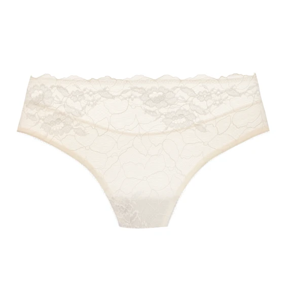 Der Lace Perfection Rio Slip von Wacoal ist in der Farbe Gardenia erhältlich. Die Rückseite dieses weißen Slips ist aus einem einfarbigen Stoff gefertigt. Die Vorderseite des Slips ist teilweise durchsichtig und mit luxuriöser Spitze verziert. Der Slip ist dank des Stretchmaterials angenehm zu tragen.