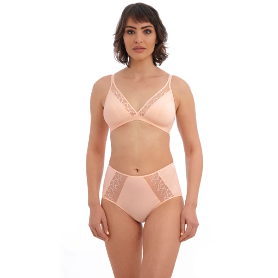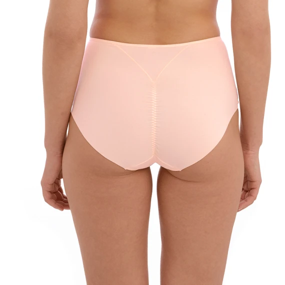 Der Lisse Taillenslip von Wacoal ist in der Farbe Peach Blush erhältlich. Dieser hellrosa Taillenslip hat zwei Streifen aus Netzstoff mit Schweizer Stickerei. Dieser hoch sitzende Slip ist ideal, um einen Bauch zu kaschieren. Kombinieren Sie den Slip mit einem der BHs aus der Lisse Kollektion.