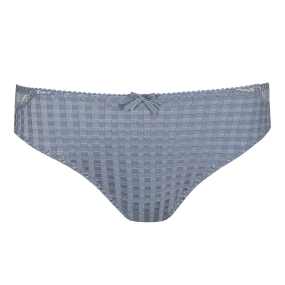 Der Madison Rio Slip von PrimaDonna Dessous ist in der Farbe Atlantic Blue. Dieser blaue Slip ist aus kariertem Stoff gefertigt und an den Seiten und am Gesäß mit Spitze verziert. Der Slip ist an den Seiten recht hoch geschnitten und lässt die Beine optisch länger erscheinen. Die Madison Serie ist bei den PrimaDonna Fans sehr beliebt. Die Kombination aus Karos und Spitze verleiht dieser Serie einen jungen und eleganten Look!