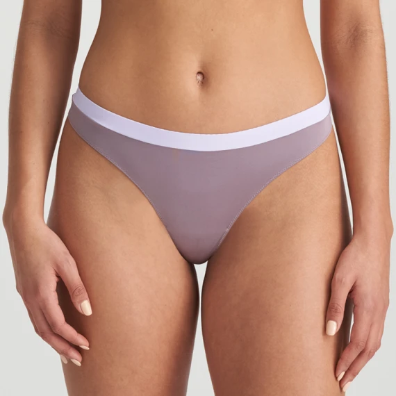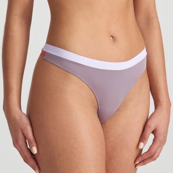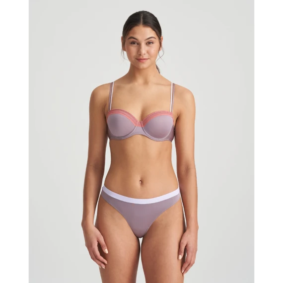 Der Matthias String von Marie Jo ist in der Farbe City Glow erhältlich. Dieser lilafarbene String ist aus glattem Stoff und hat eine glänzende Oberfläche. Der String ist auf der Rückseite mit einem Band aus rosa Spitze verziert. City Glow ist eine schöne Mischung aus Taupe und Lila. Kombinieren Sie diesen String mit einem der Matthias BHs.