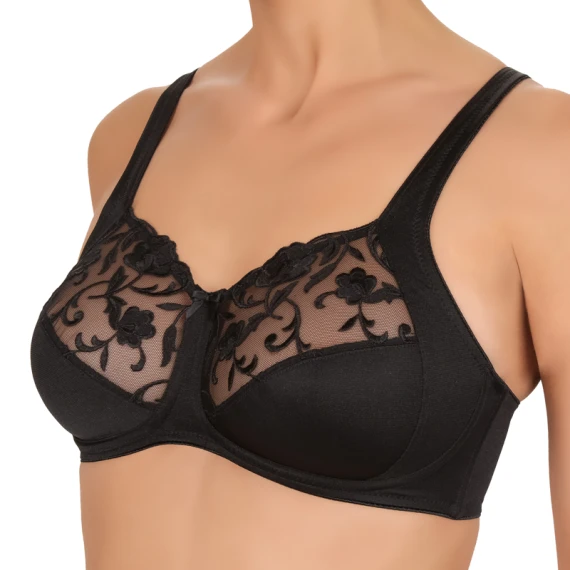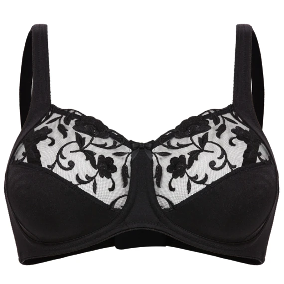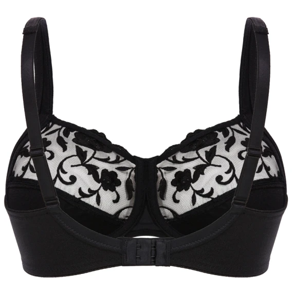 Der Moments BH ohne Bügel von Felina ist in der Farbe Black erhältlich. Dieser schwarze BH besteht aus einem halbtransparenten Stoff mit einer klassischen Stickerei auf der Oberseite der Cups. Herrlich weich und auch sehr bequem. Der BH sitzt gut und bietet Komfort und Halt. Kombinieren Sie diesen BH mit den Slips aus der Serie Moments!