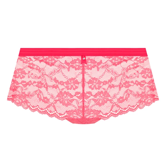 Die Offbeat Shorts von Freya ist in der Farbe Pink erhältlich. Diese rosafarbenen Shorts sind aus durchscheinender sinnlicher Spitze gefertigt. Oben ist eine dunkelrosa Paspel mit einem niedlichen Detail. Kombinieren Sie diese Shorts mit einem der BHs aus der Offbeat Kollektion!