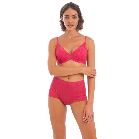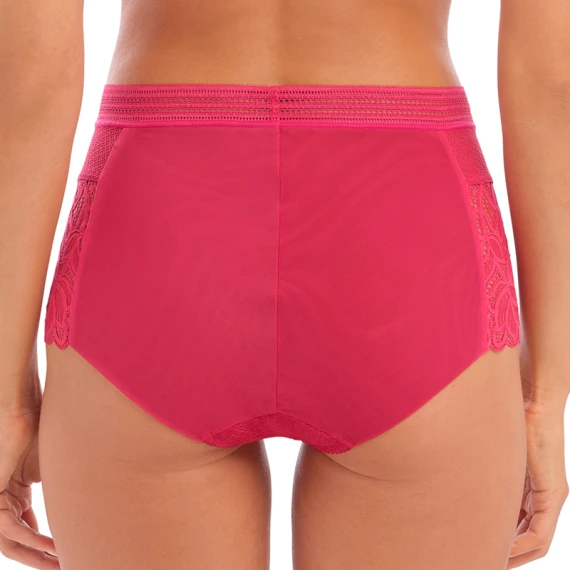 Der Raffine Hoher Slip von Wacoal ist in der Farbe Framboise erhältlich. Dieser rosa Slip hat verspielte Spitze an den Seiten. Der Slip ist extra hoch geschnitten und eignet sich daher perfekt, um jeden eventuellen Bauch zu kaschieren. Kombinieren Sie mit einem passenden BH aus der Raffine-Serie!