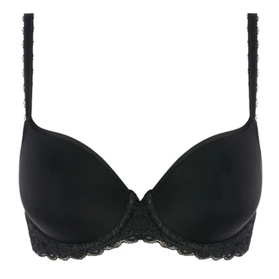 Der Raffine vorgeformter BH von Wacoal ist in der Farbe Black ehältlich. Dieser schwarze BH hat nahtlose Cups und ist an der Unterseite mit eleganter Spitze verarbeitet. Der tiefe Schnitt der Cups verleiht Ihnen ein sinnliches Dekolleté. Die Träger können auf zwei Arten getragen werden, gerade oder über Kreuz. Kombinieren Sie diesen BH mit einem der Slips aus der Raffine Kollektion!