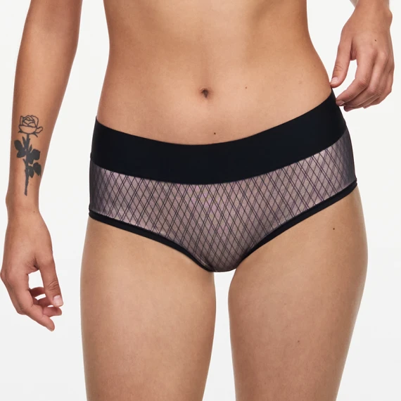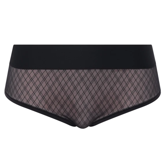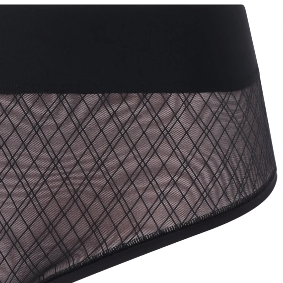 Der Smooth Lines Slip von Chantelle ist in der Farbe Schwarz/Beige erhältlich. Die Vorderseite dieses Slips ist doppelt gefüttert und mit einem grafischen Netz-Karomuster auf beigem Hintergrund versehen. Auf der Rückseite ist der Slip einfarbig schwarz. Der Slip hat einen breiten Bund für optimalen Komfort und einen glättenden Effekt. Kombinieren Sie diesen Slip mit dem Smooth Lines BH für einen kompletten Look.