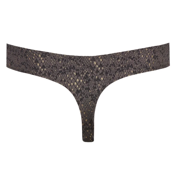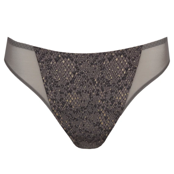Der Villemin String von PrimaDonna Twist ist in der Farbe Kitten Grey erhältlich. Der graue String ist mit einem weichen, glänzenden Stoff mit schickem Schlangenprint überzogen. Kombinieren Sie diesen String mit einem der BHs aus der Villemin Kollektion. Kitten Grey ist ein trendiger Schlangenprint in schmeichelhaftem Dunkelgrau und Schwarz!